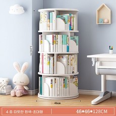 360도 회전책장 책꽂이 공간활용 틈새 diy 좁은 수납력좋은 조립 돌아가는 원형 서재, 와이드 4단 화이트