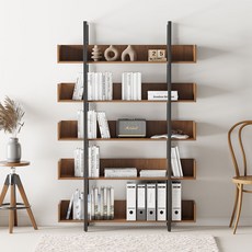 프리메이드 런스 4단 5단 책장 전면 낮은 책장, 월넛