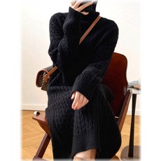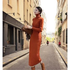 체인지쉬 (change she) 가을 겨울 여성 롱 니트 원피스 목폴라 긴팔 원피스