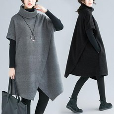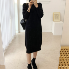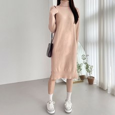 [바니드] 여성 목폴라 트임 원피스 베이직 단색 니트 루즈핏 0919