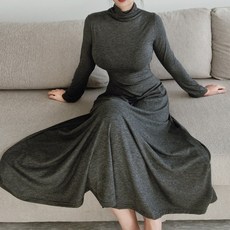 목폴라 롱 니트 원피스 터틀넥 솔리드 컬러 원마일 룩